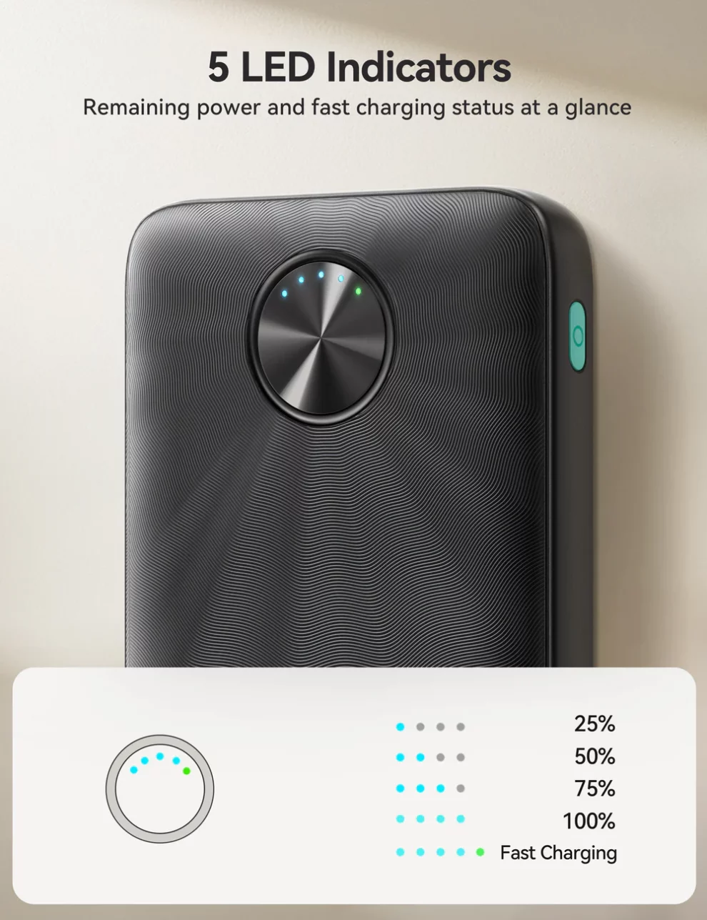 - LED indicators for real-time battery status